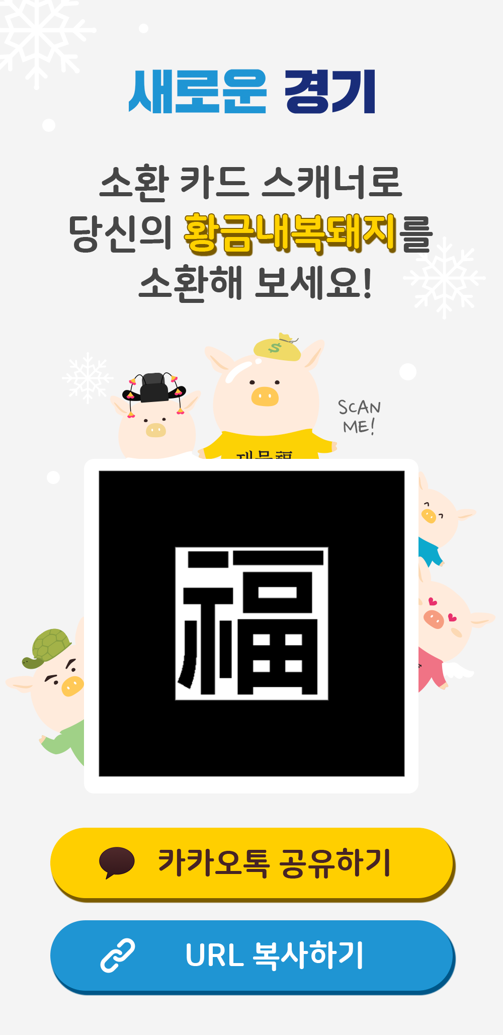 코드를 인식하면 나만의 복 돼지를 확인할 수 있음