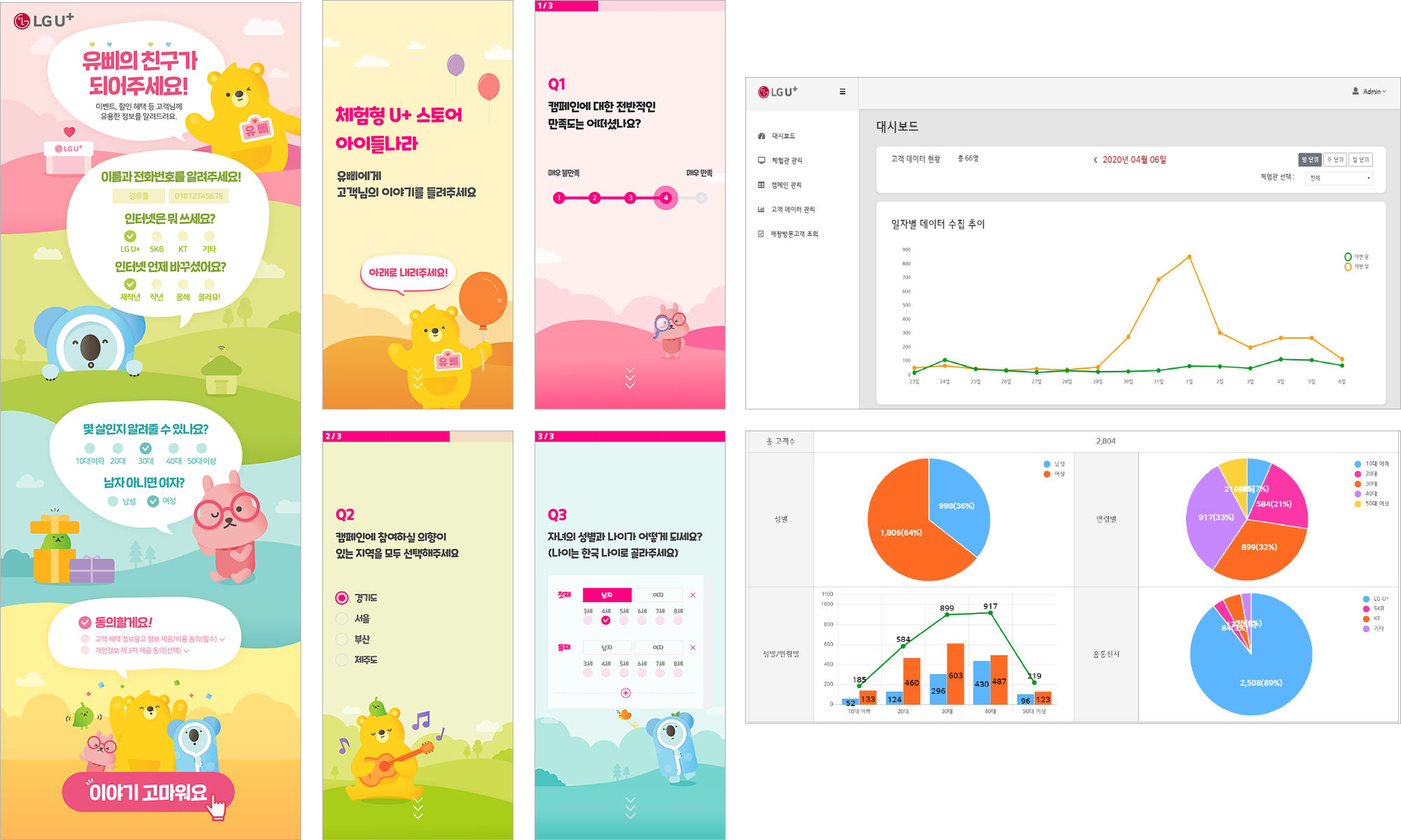 진행되는 캠페인별로 맞춤형 설문조사를 생성하여 고객정보 및 설문조사 수행 및 통계 데이터를 분석합니다